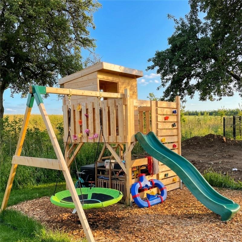 En achetant nos jeux d’extérieur, vous achetez un produit de qualité supérieure et ce, à un prix juste. Nous offrons des promotions régulières au cours desquelles nous proposons une sélection de modèles et de sets à un prix attractif et avantageux. Néanmoins, aucune concession n’est faite sur la qualité et la finition de nos produits. Forts de nos 20 ans d’expérience, nos modèles sont soigneusement conçus pour vous offrir une variété de designs en respect de la norme de sécurité DIN EN 71. Tous nos jeux de plein air bénéficient d’une garantie de 10 ans.
