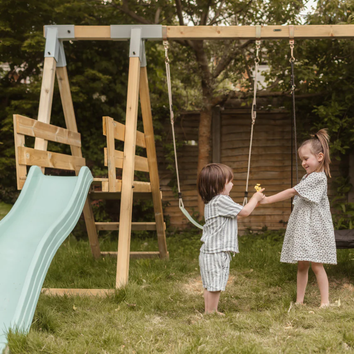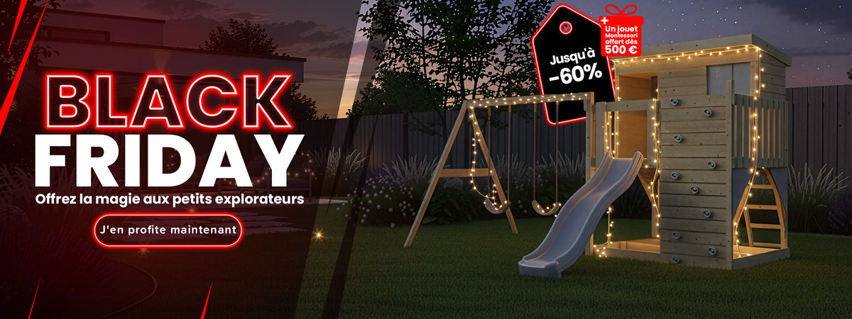 Le jardin est un formidable terrain de jeu pour les enfants, et nous souhaitons encourager les activités extérieures. En plus de la stimulation physique et de la dépense d'énergie, ces dernières favorisent également l'ímaginaire et la créativité. Tranformez ainsi votre jardin en un véritable espace récréatif. Nos jeux de plein air sont exclusivement fabriqués en bois de haute qualité, garantissant ainsi des produits parfaitement adaptés à un environnement extérieur, résistants et durables. Nous vous proposons des toboggans, un large assortiment de balançoires mais aussi une incroyable sélection d'aires de jeux.