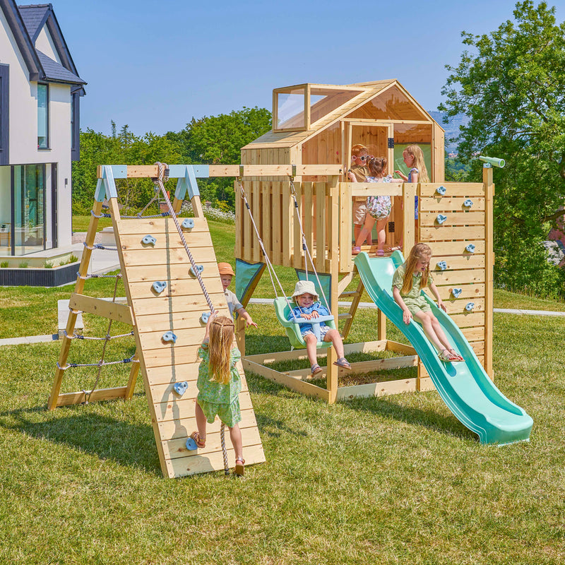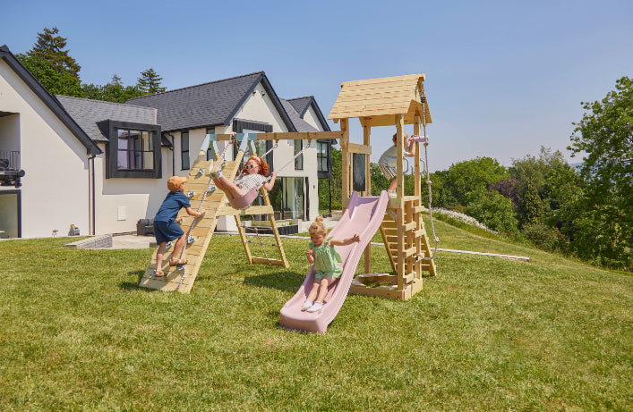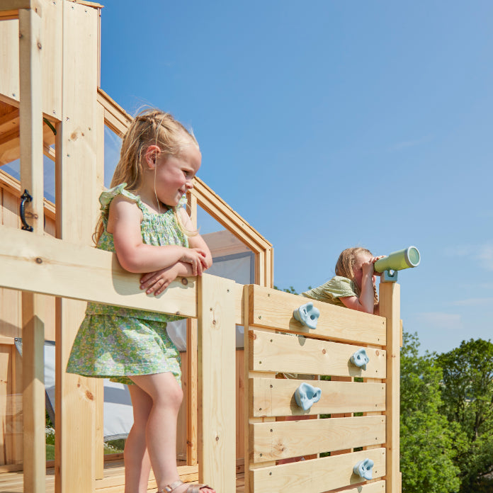 OutdoorToys vous offre la possibilité de faire de votre jardin un véritable espace de jeu pour vos enfants. Nos aires de jeux avec toboggan et balançoire permettent une polyvalence d’utilisation et conviennent aux enfants de différentes tranches d’âge. Fabriquée en bois de haute qualité, notre tour à grimper est durable et pourra accompagner vos enfants de la maternelle à l’école primaire.