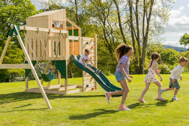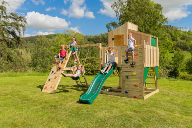 Transformez votre jardin en une véritable oasis de jeu et commandez des balançoires avec toboggan en ligne chez OutdoorToys!