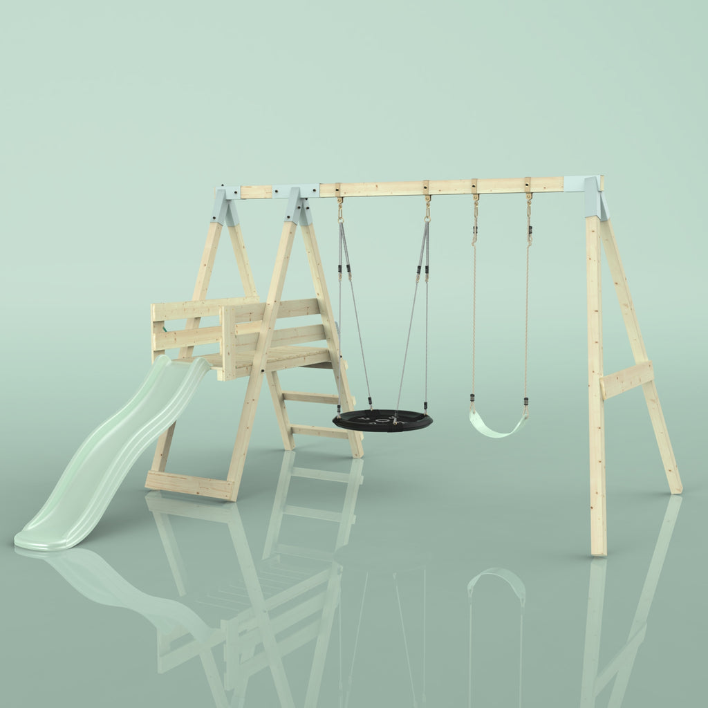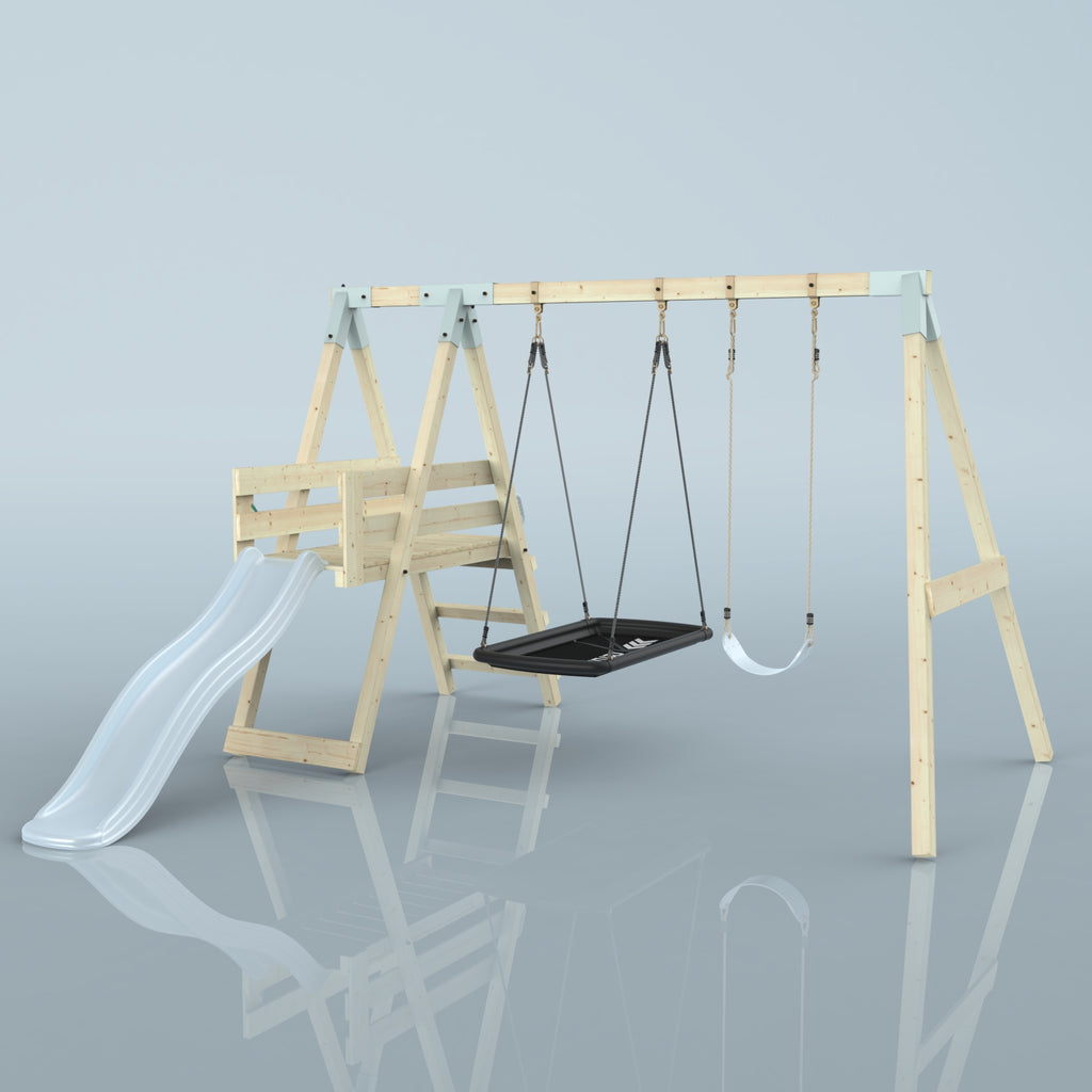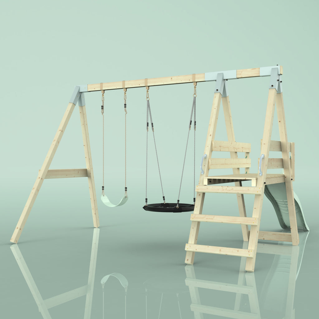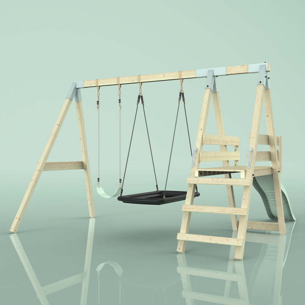 Notre Balançoire PolarPlay Hippocampe fait battre le cœur des enfants. En plus de la balançoire double, un toboggan garantit un grand plaisir de jeu dans son propre jardin. Grâce à la balançoire pour bébé, les tout-petits peuvent déjà contempler le jardin de la maison depuis la perspective d'un oiseau, tandis que les frères et sœurs plus âgés ne se lassent pas du toboggan.