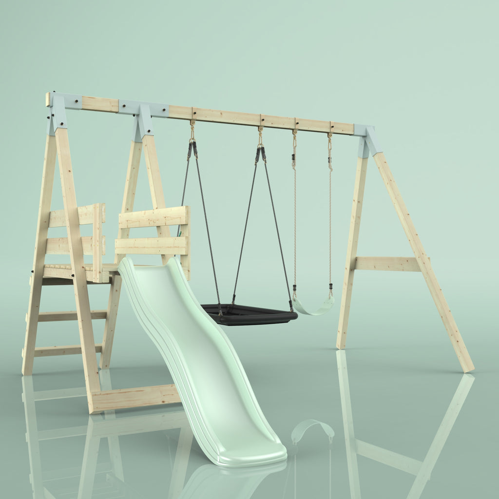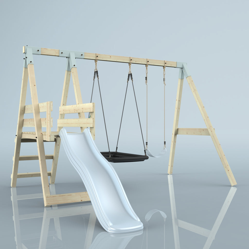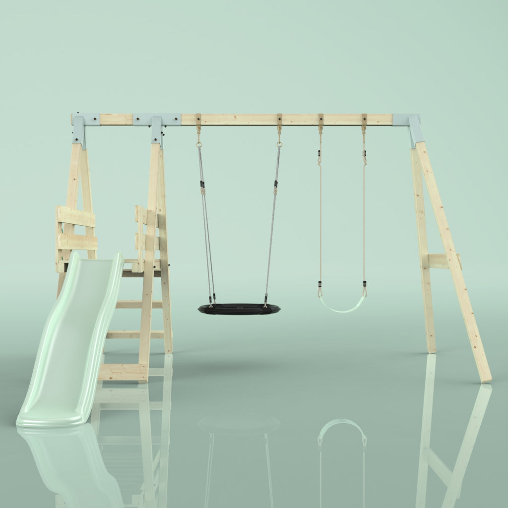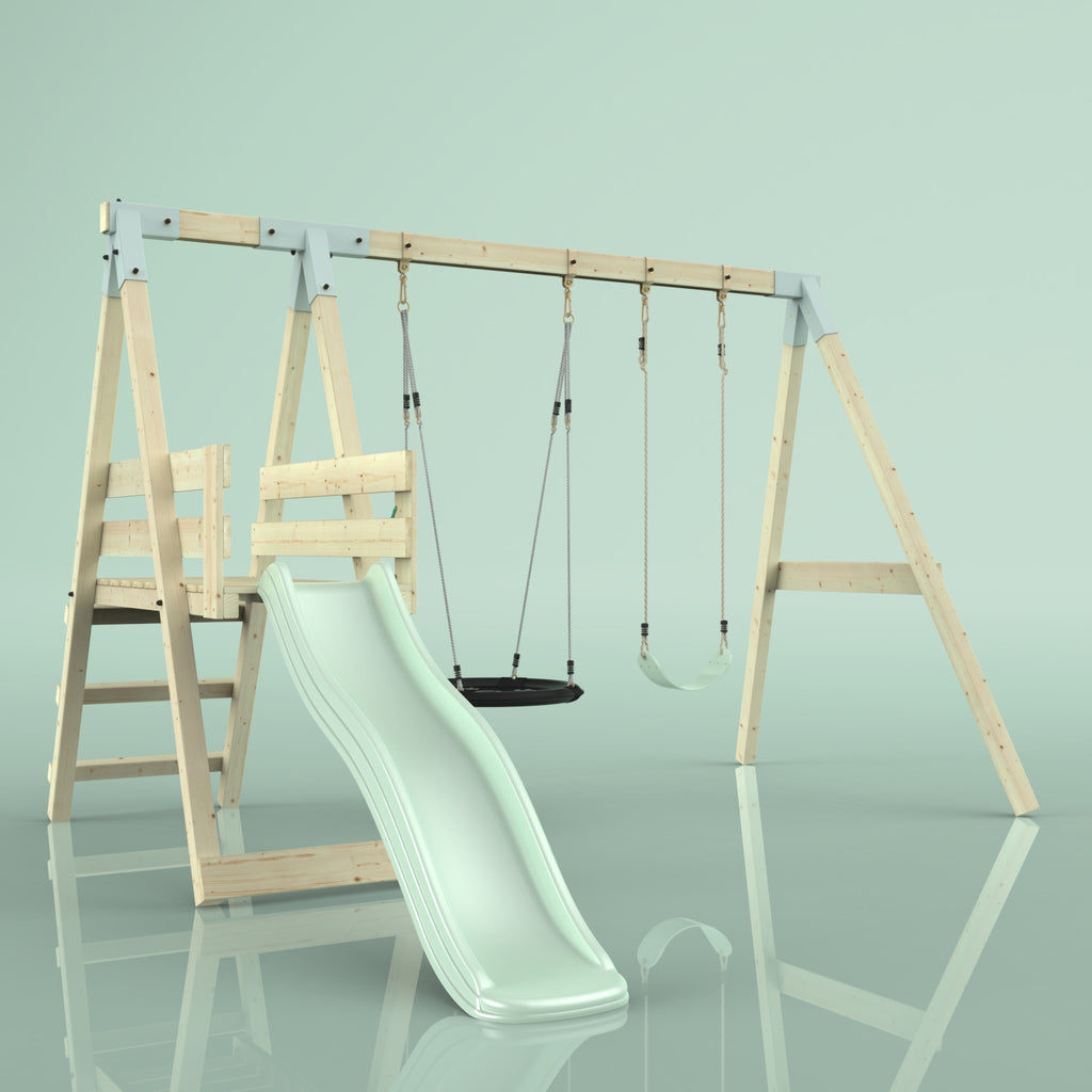 Notre Balançoire PolarPlay Hippocampe fait battre le cœur des enfants. En plus de la balançoire double, un toboggan garantit un grand plaisir de jeu dans son propre jardin. Grâce à la balançoire pour bébé, les tout-petits peuvent déjà contempler le jardin de la maison depuis la perspective d'un oiseau, tandis que les frères et sœurs plus âgés ne se lassent pas du toboggan.