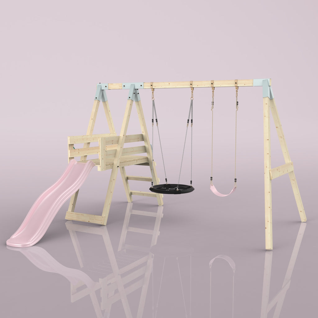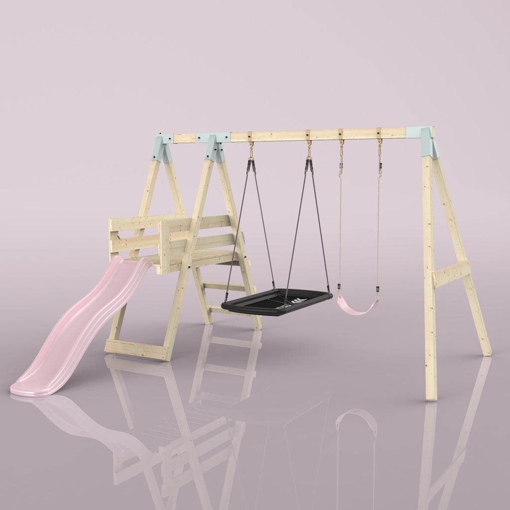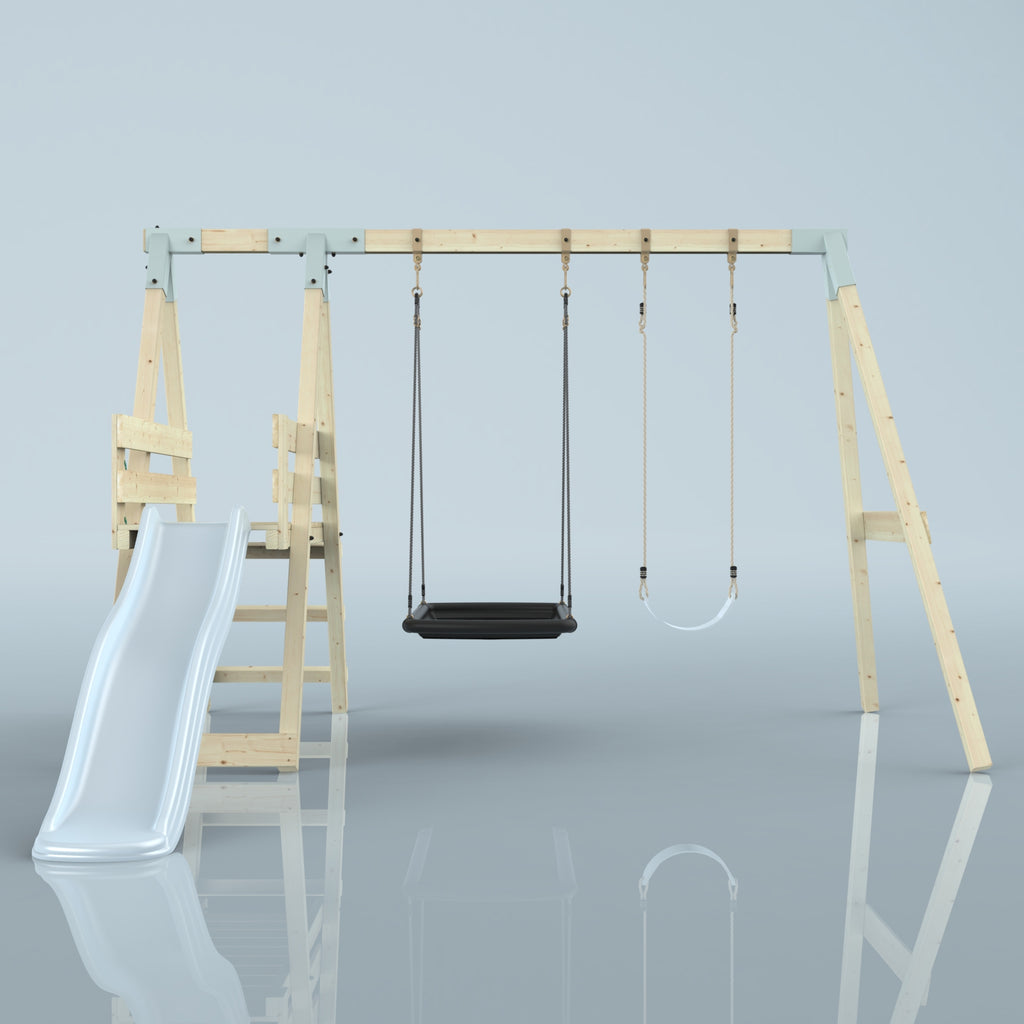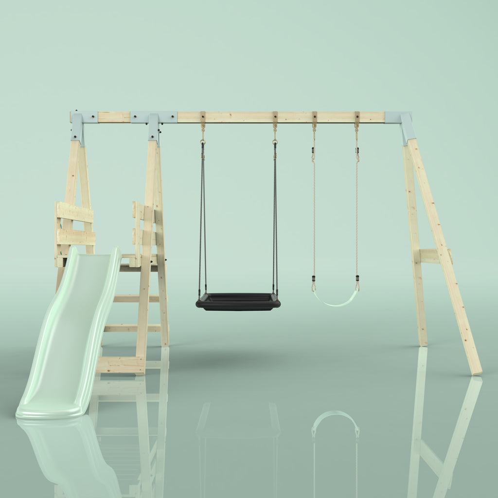 Notre Balançoire PolarPlay Hippocampe fait battre le cœur des enfants. En plus de la balançoire double, un toboggan garantit un grand plaisir de jeu dans son propre jardin. Grâce à la balançoire pour bébé, les tout-petits peuvent déjà contempler le jardin de la maison depuis la perspective d'un oiseau, tandis que les frères et sœurs plus âgés ne se lassent pas du toboggan.