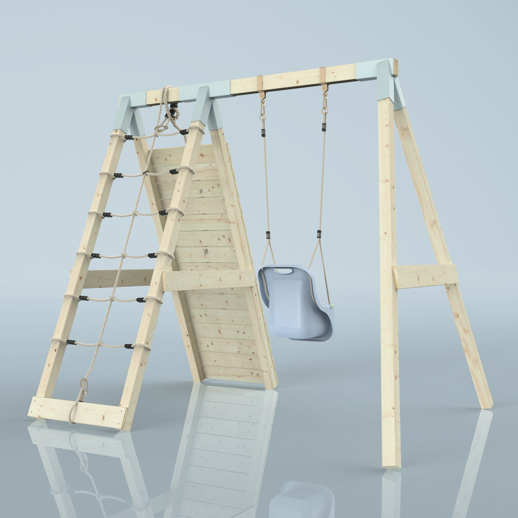 Avec la lasure pour bois OutdoorToys, tu protèges durablement le bois non traité contre les intempéries et les parasites. Notre lasure pour bois est testée selon la norme DIN EN 71-3 et convient donc parfaitement aux jeux pour enfants. Note que cette protection ne peut être obtenue que si le traitement est effectué avant le montage de l'équipement de jeux pour enfants. Tu peux l'ajouter après avoir ajouté le produit au panier ou sous Mises à niveau et accessoires.